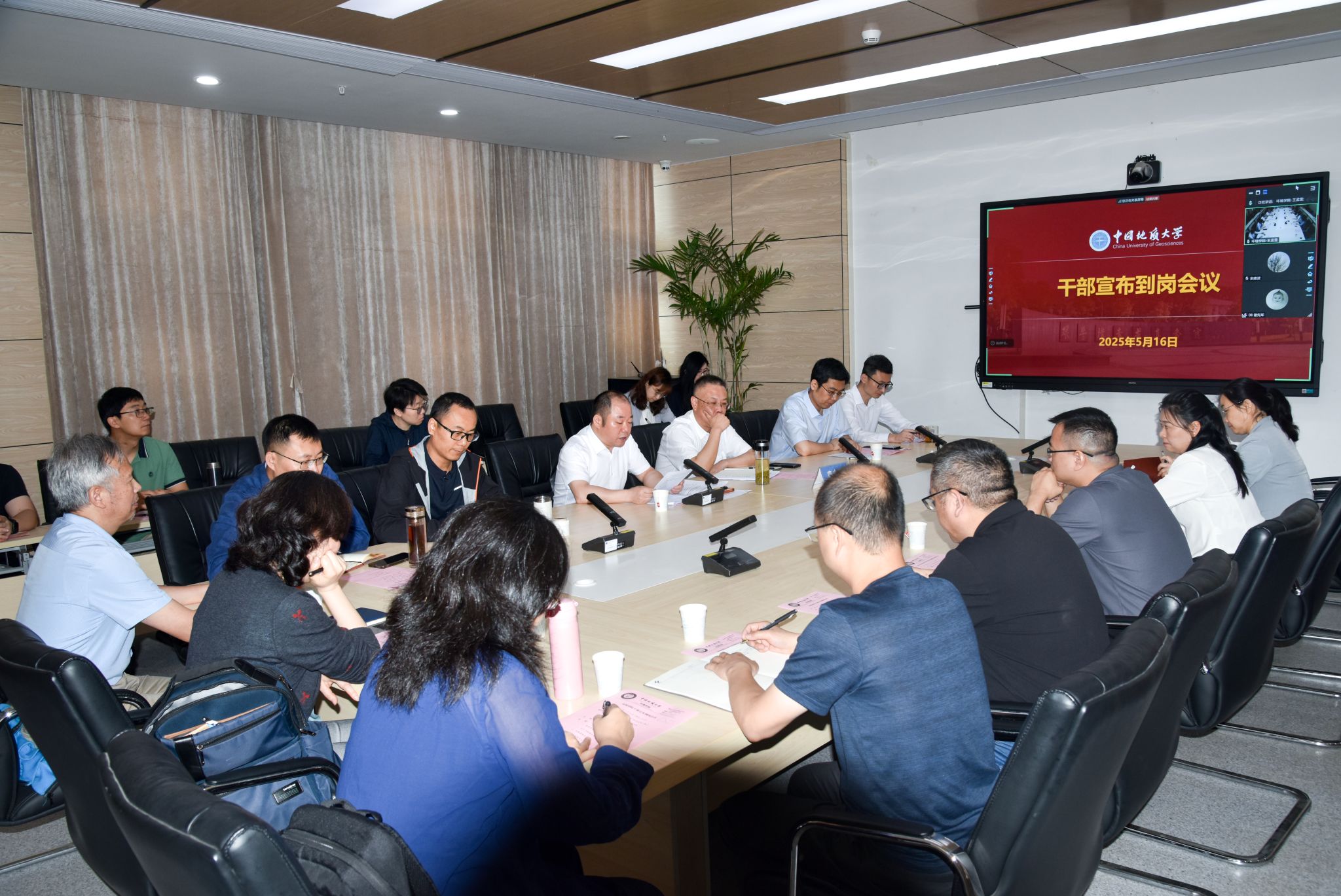 摄影张学海 通讯员/编辑王孟雪)2025年5月16日,环境学院行政领导班子宣布到岗会议在未来城校区科教楼四308会议室和线上同步召开。校党委副书记、纪委书记唐忠阳,环境学院党政领导班子全体成员,三级单位党政负责人及教职工代表参加会议。学院党委书记姜明敏主持会议。