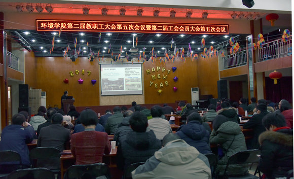 2017年1月10日下午在教职工活动中心综合厅,环境学院召开第二届教职工大会第五次会议暨第二届工会会员大会第五次会议。会议的主题是:科学规划“十三五”,建设“双一流”。学校工会副主席高复阳,环境学院工会委员、各系室工会组长,学院党政领导班子成员、全体教职工和工会会员参加了大会。