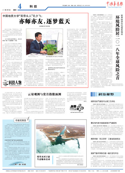 【中国气象报】2018年3月6日第四版 报道采访获得2017年谢义炳青年气象科技奖的我院大气系孔少飞教授《亦师亦友,逐梦蓝天》,作者:张学海。