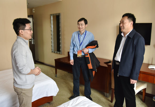 (环境学院张学海)2018年3月25日下午,环境学院党委书记李素矿来到学校迎宾楼和惠宾楼宿舍,看望参加2018国际青年学者地大论坛-环境学院分论坛的参会青年学者代表。人事处副处长周刚一同看望。