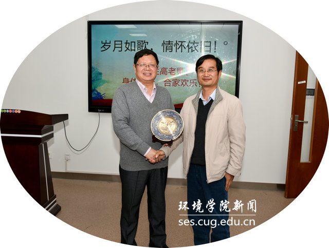 学院李素矿书记、马腾院长,柴波副院长、谢先军副院长分别代表学院党委、行政、工会等对程胜高老师自1995年来到中国地质大学(武汉)工作,二十四年为学院、为学科建设和发展所做出的贡献表示感谢,感谢他把自己的青春年华献给了环境保护事业,希望程老师人退心不退,一如既往地为学校和学院发展建言献策。