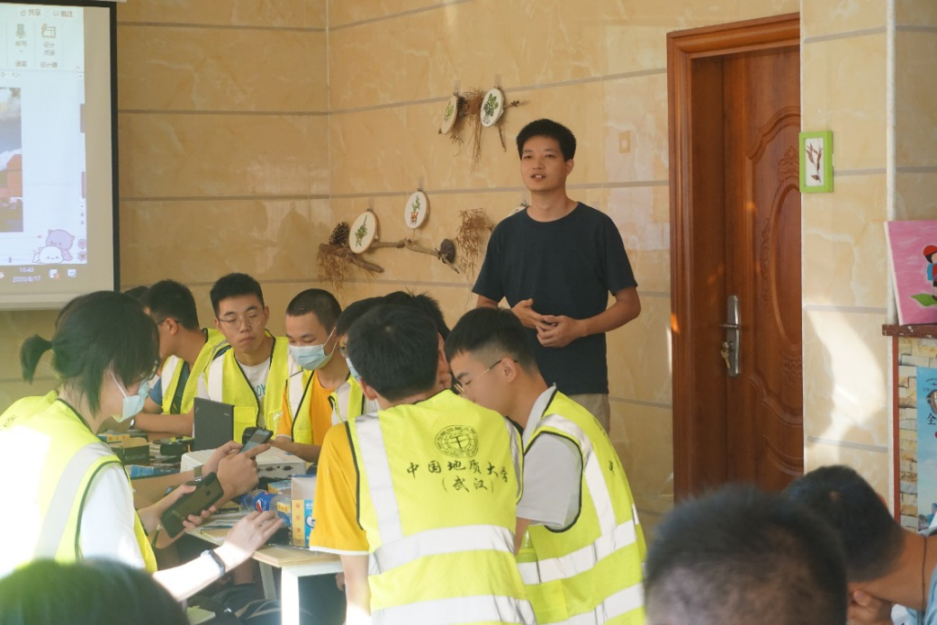 实习教学第一课在室内进行。邢新丽老师详细讲解了野簿记录方法,并就罗盘使用的方法进行针对性的指导。刘邓老师对丹霞山世界地质公园的区域地质背景进行了详细的讲解,并对《普通地质学》课程中相关知识点进行回顾,为野外实习做好充足的知识储备。