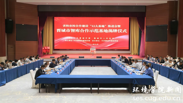 学院党委书记李素矿与晋城市市委常委、组织部长辛艾艾共同为省校合作智库示范基地——“中国地质大学(武汉)晋城市水务局智库合作基地”揭牌。