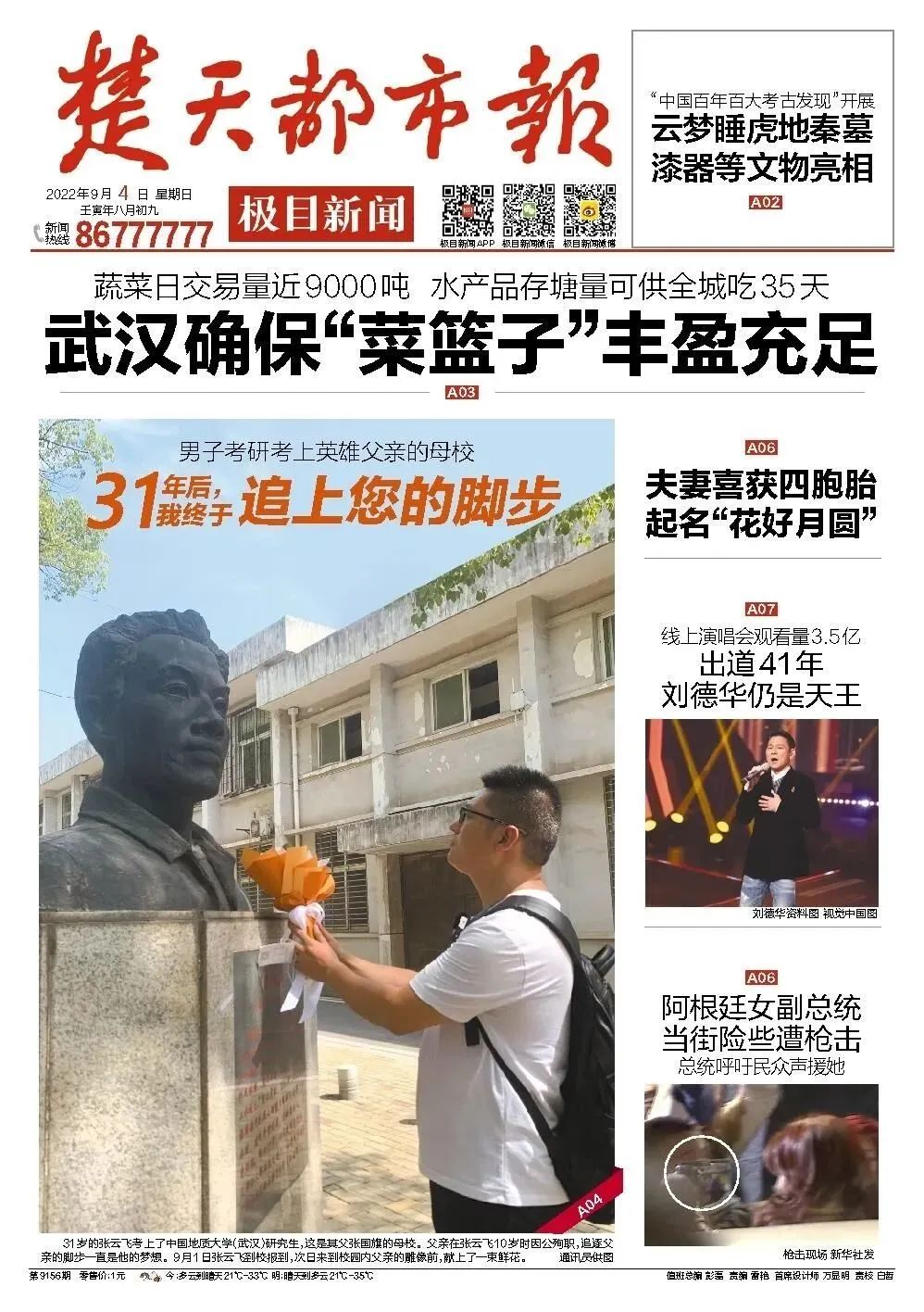 英雄父子的感人故事,在报纸、电视、网络、微信、微博、抖音等不同的媒体“刷屏”,广大读者和网友纷纷点赞。太多的媒体平台进行报道,这里无法一一展示。