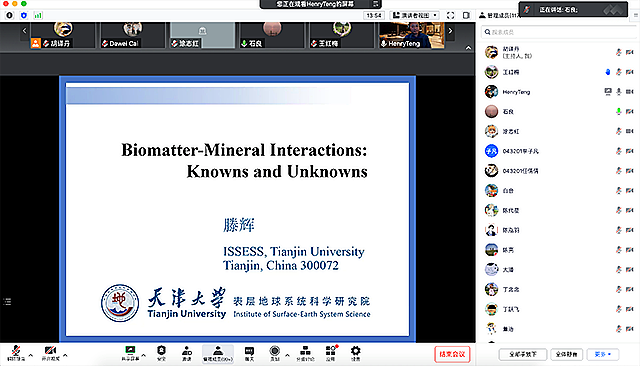 (通讯员杨涛 胡译丹 编辑张学海)9月17日,应环境学院石良教授邀请,天津大学表层地球系统科学院滕辉教授作了题为《Biomatter-mineral interactions: Known and Unknown》的线上学术报告,该报告是我校校庆七十周年系列学术报告活动“名家论坛”之一。石良教授主持报告会。