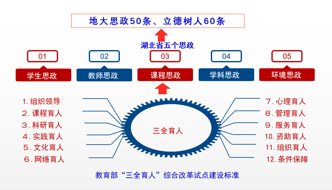 按照《教育部办公厅关于开展“三全育人”综合改革试点工作的通知》要求,学院以课程育人、科研育人、实践育人、文化育人、网络育人、心理育人、管理育人、服务育人、资助育人、组织育人等“十大育人”体系为基础,全面统筹办学治院各领域、教育教学各环节、人才培养各方面的育人资源和育人力量,充分挖掘各项工作蕴含的育人元素和育人逻辑,构建微观的一体化育人体系。