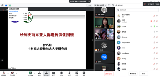 在会议讨论环节,师生们踊跃提问,就“积物和骨骼作为DNA载体有何区别?”、“如何根据DNA数据复原古人类面貌?”、“融合人群是否有其独特的环境适应?”、“能否找到与遗传联系相对应的具体历史事件?”以及“非内源性DNA的数据分析价值”等问题与付巧妹研究员进行讨论交流。