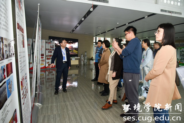 与会人员集体参观环境学院党建“双创”工作成果展板,李素矿重点讲解学院基本概况、党建工作体系、三全育人改革、跨学科教育研究、张国旗班行动计划、“4+N”美丽中国课程思政、“1+6”党建资政育人载体、兄弟院校交流互鉴、领导关怀指导和社会媒体反响等十个方面,全面反映了学院党委近年来党建示范创建和质量创优工作取得的创新性理论成果、制度成果、实践成果和特色成果,是环境人干事创业、追求卓越的汗水结晶。