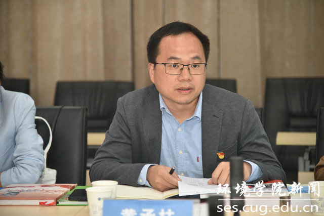 黄承柱讲话,他对环境学院党建“双创”工作成效给予高度评价,后续将进一步加强对党建工作的思考与探索,积极推进党建与人才培养、教学科研等业务工作深度融合,做好学校党建示范创建和质量创优工作。