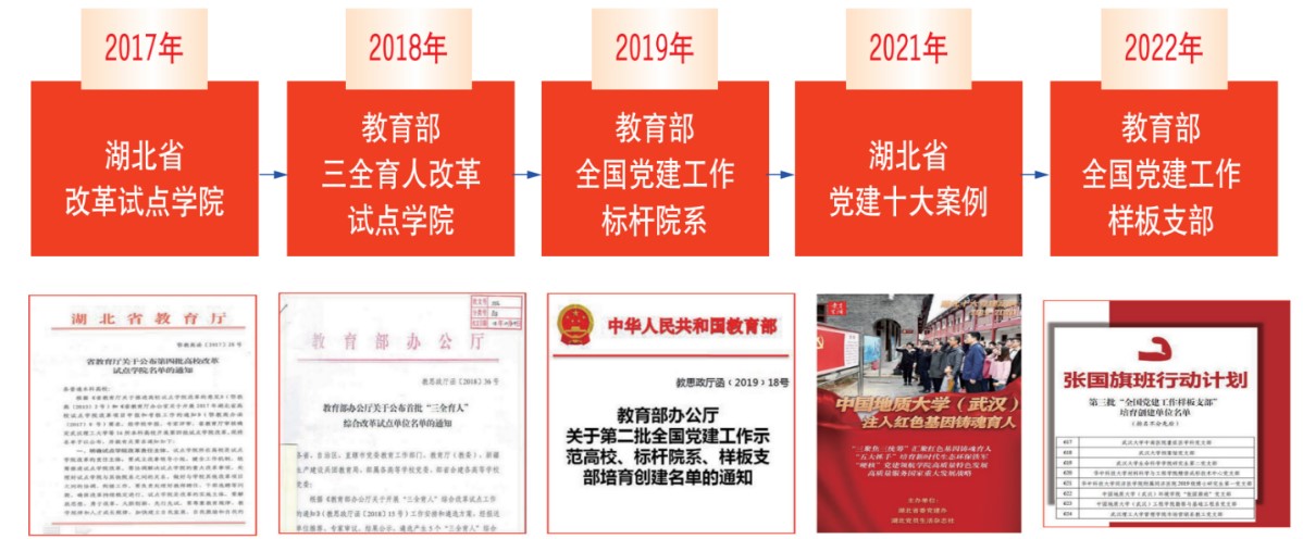 近年来,上级部门领导多次来院调研给予充分肯定和高度评价。2018年12月,时任湖北省委常委、宣传部部长、高校工委书记王艳玲来学院调研党建和思政工作。2021年时任湖北省委组织部长李荣灿来校调研听取专题汇报。2022年5月全省高校党建工作推进会定点考察学院,“张国旗班”党支部在11月湖北高校“全国党建工作样板支部”工作交流研讨会做专题交流,省高工委专职副书记张幸平两次莅临学院指导。学院多次与其他高校就育人工作开展学习交流,促进合作与沟通。中央电视台、新华网、《人民日报》《光明日报》《中国教育报》《中国资源报》《中国科学报》《中国青年报》《中国气象报》《经济日报》《湖北日报》、湖北卫视、武汉电视台等媒体平台对学院事迹进行了深入宣传报道。仅张国旗、张云飞英雄父子故事被大台大报大刊大网宣传报道的总阅读量超过2000万。
