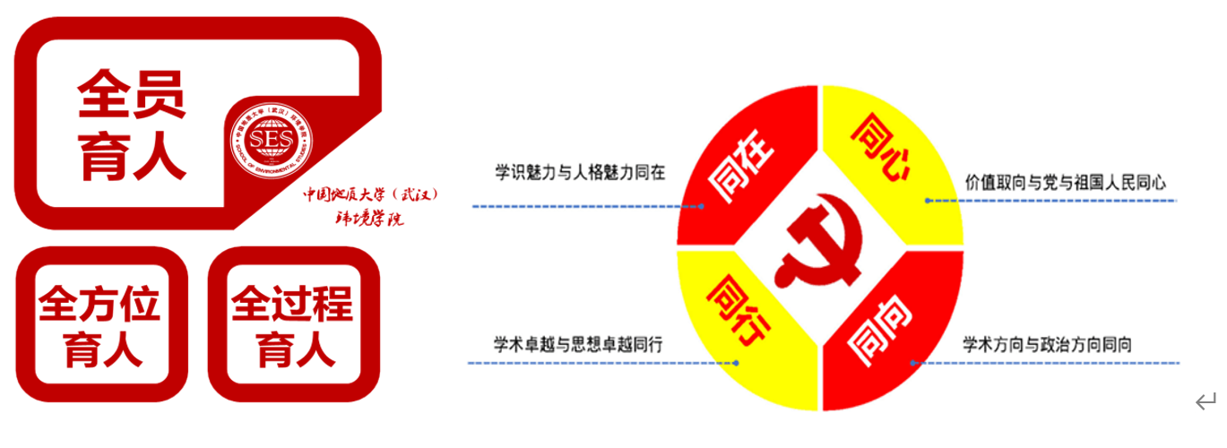 环境学院是我国最早开展水文地质专业高层次人才培养的学院,是湖北省第一个设立环境工程博士点、华中地区唯一设立大气科学本科专业的学院。具有本-硕-博完整人才培养体系和水-土-气-生-环学科专业育人体系。学院以立德树人为根本任务,为党育人、为国育才,致力于培养红专能优的新时代生态环保铁军。学院把以史铭院、学术立院、特色建院、人才强院、文化兴院、开放活院、依法治院作为办学治院理念,以课程育人、科研育人、实践育人、文化育人、网络育人、心理育人、管理育人、服务育人、资助育人、组织育人等“十大育人”体系为基础,全面统筹办学治院全过程、教育教学各环节、人才培养各方面的育人资源和育人力量,构建微观的一体化育人体系。学院先后入选湖北省高校试点改革学院、教育部首批“三全育人”综合改革试点学院、第二批全国党建工作标杆院系,“张国旗班”党支部入选第三批“全国党建工作样板支部”,党建成果“注入红色基因铸魂育人”入选2019-2020湖北十大党建案例。