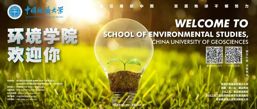 胸怀祖国,以红专能优为标彰显铁军风采;放眼世界,凭古今中外之学续写地大荣光。欢迎广大学子报考环境学院!我们将永葆赤子情怀、争做时代先锋,按照“三步走”发展战略规划,一同朝着“建设环境地学领域一流研究型学院、新时代生态环保铁军摇篮”目标,阔步向前!
