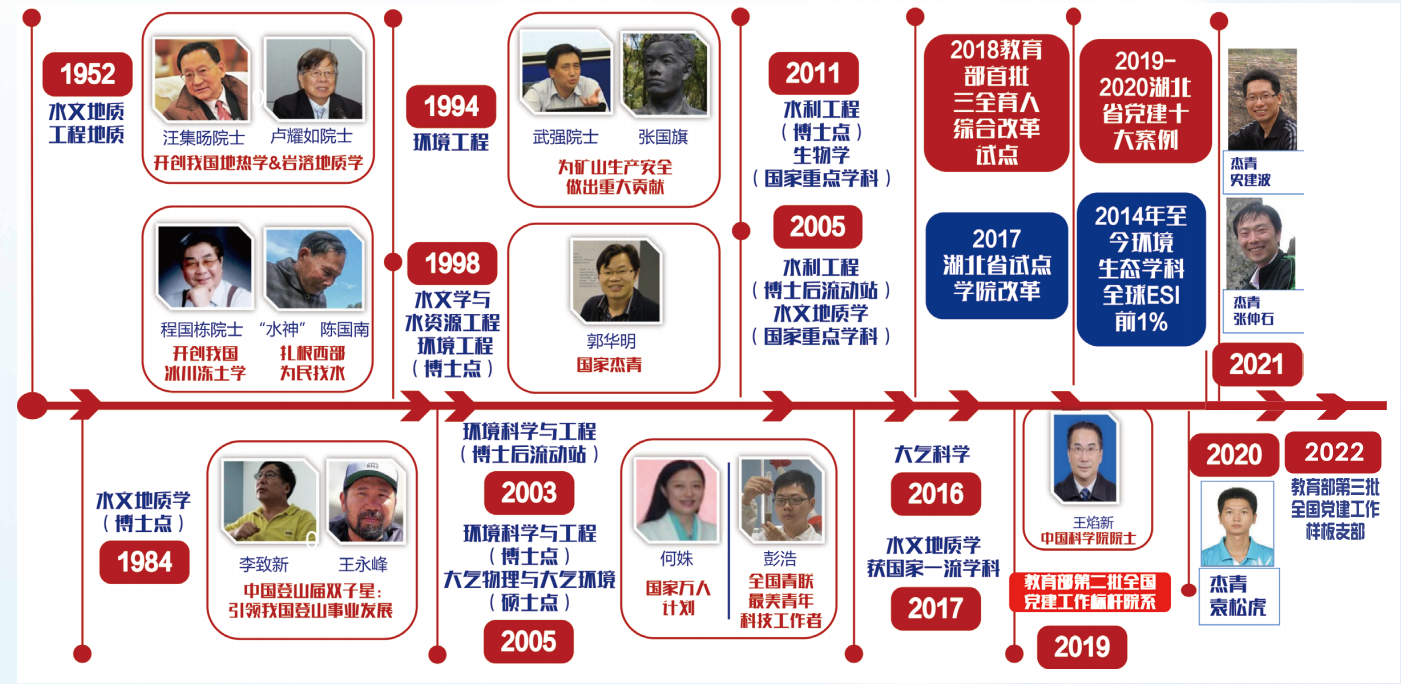科技创新、平台建设成效显著。建立了“理论探索--技术研发—应用示范”、“水—土--气--生”、“湖北省—自然资源部—生态环境部”、“重点实验室—工程中心—中试基地”的学科平台体系。作为主干力量参与生物地质与环境地质国家重点实验室的建设;已建成15个省部级以上的科研平台,实现了每个学科专业拥有自身独立运行的国家级、省部级科技平台;拥有水利部水文、水资源调查评价甲级资质和生态环境部环境影响评价乙级资质;拥有“环境水文地质”学科创新引智基地1个与“环境水文地质”基金委创新研究群体1个。