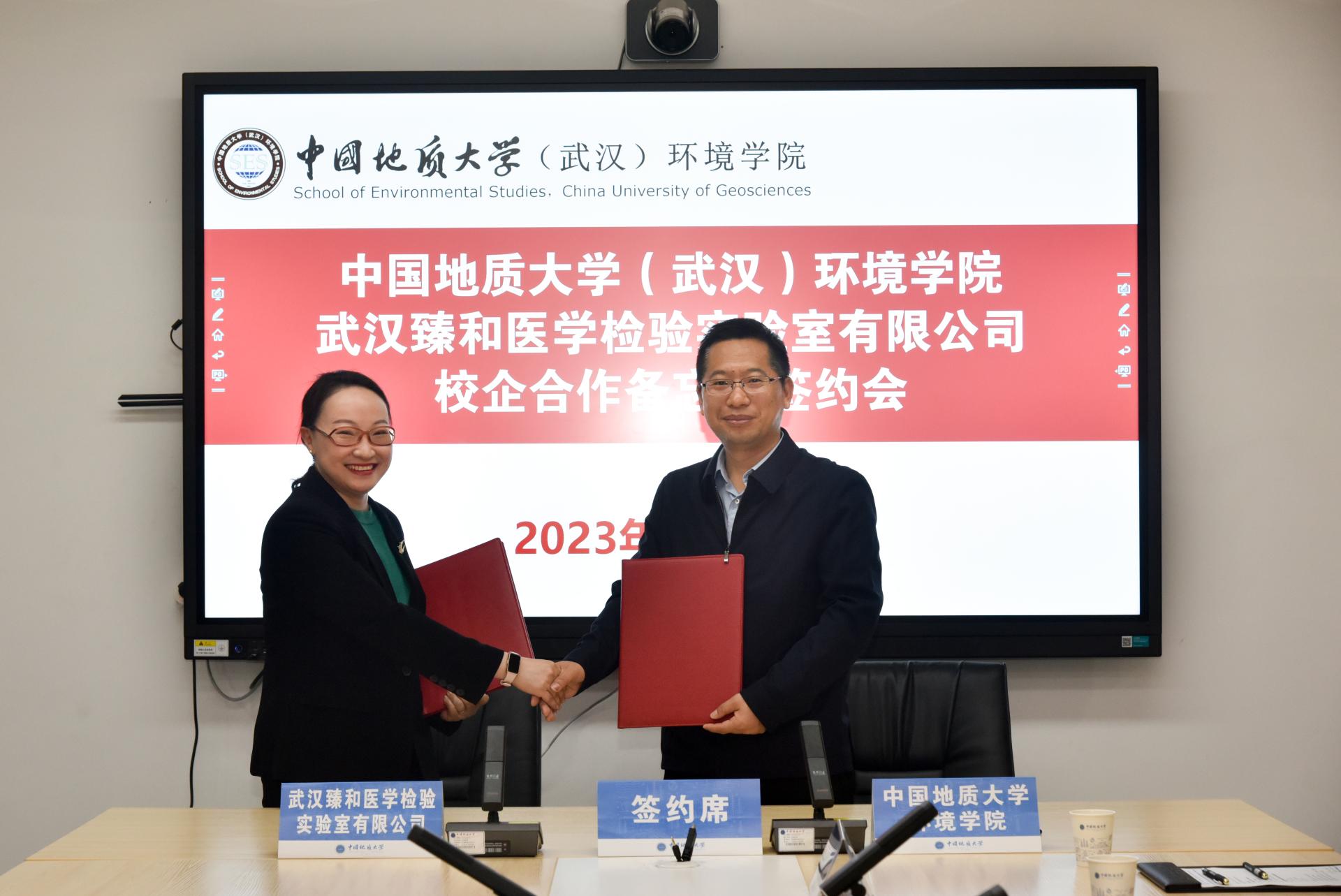 (通讯员侯新东 董依然 摄影/编辑严丽莎)4月23日下午,中国地质大学(武汉)环境学院与武汉臻和医学检验实验室有限公司(简称“臻和”)在未来城校区教科四楼308会议室举行了战略合作备忘录签约仪式。我院院长史建波教授和臻和公司赵饮虹女士分别代表双方在战略合作协议上签字。