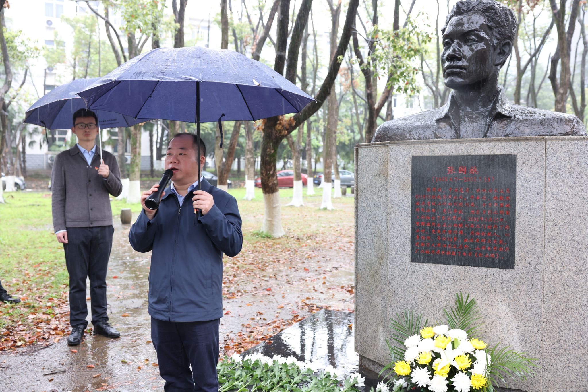 环境学院党委书记姜明敏表示,环境学院师生每年清明举行致敬英雄校友活动,既是对张国旗学长的深切缅怀,来表达对英雄不能忘却的纪念,也是一场跨越时空的学习,来重温张国旗的先进事迹。他强调,张国旗是红专能优的典范,并总结张国旗的四点精神品质:一是艰苦朴素、淡泊名利,二是献身基层、服务家乡,三是学以致用、知行合一,四是胸怀大爱、青春建功。他强调,要传承好张国旗身上宝贵的精神品质,努力争做红专能优的新时代生态环保铁军,并用张国旗所言寄语在场师生“只有把知识和才华,献给最需要的地方,这样的人生才最有价值。”