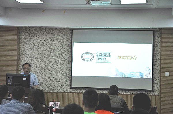 马腾致欢迎词。他从环境学院办学历史、学科建设、科研和实验平台建设、师资队伍、人才培养、国际交流与合作等方面介绍了学院基本情况。并代表学院欢迎各高校学生报考环境学院研究生。