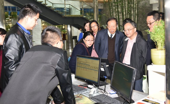考查专家组考察环境学院教学实验中心,潘欢迎介绍积水团队创业梦工厂情况