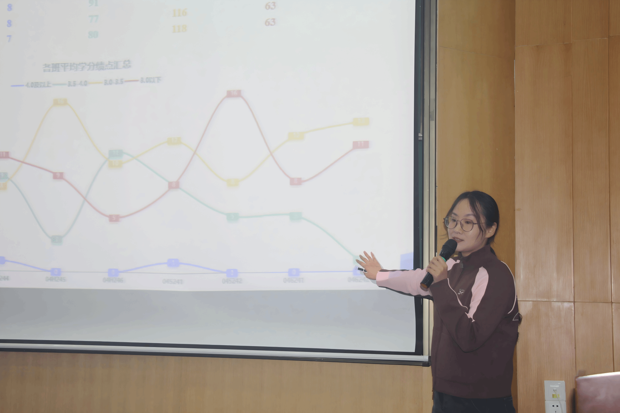宋霖老师对大一上学期的学情进行详细分析,并作学期工作总结。宋老师从学业成绩、获奖情况等多个维度,全面回顾同学们在这一学期的成长与进步。她充分肯定同学们的努力,同时也指出存在的问题和不足,鼓励大家在接下来的学习中继续保持积极态度,勇于面对挑战,不断提升自我。