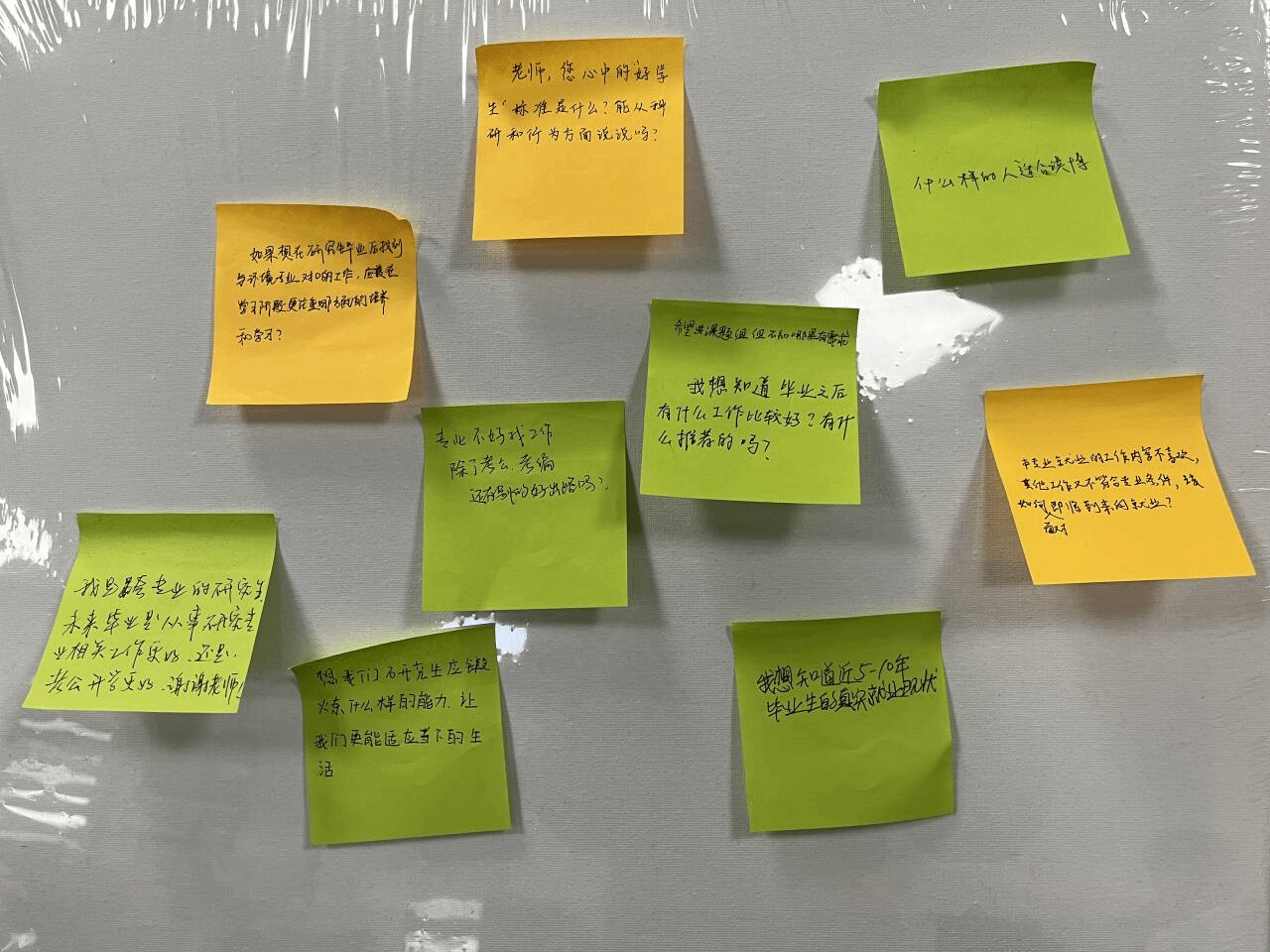 同学们积极参与,热烈讨论,以现场提问或写下自身疑惑的方式与嘉宾们交流,活动结束后,仍有许多同学主动与嘉宾们交流,增进了学生与老师们之间的联系。