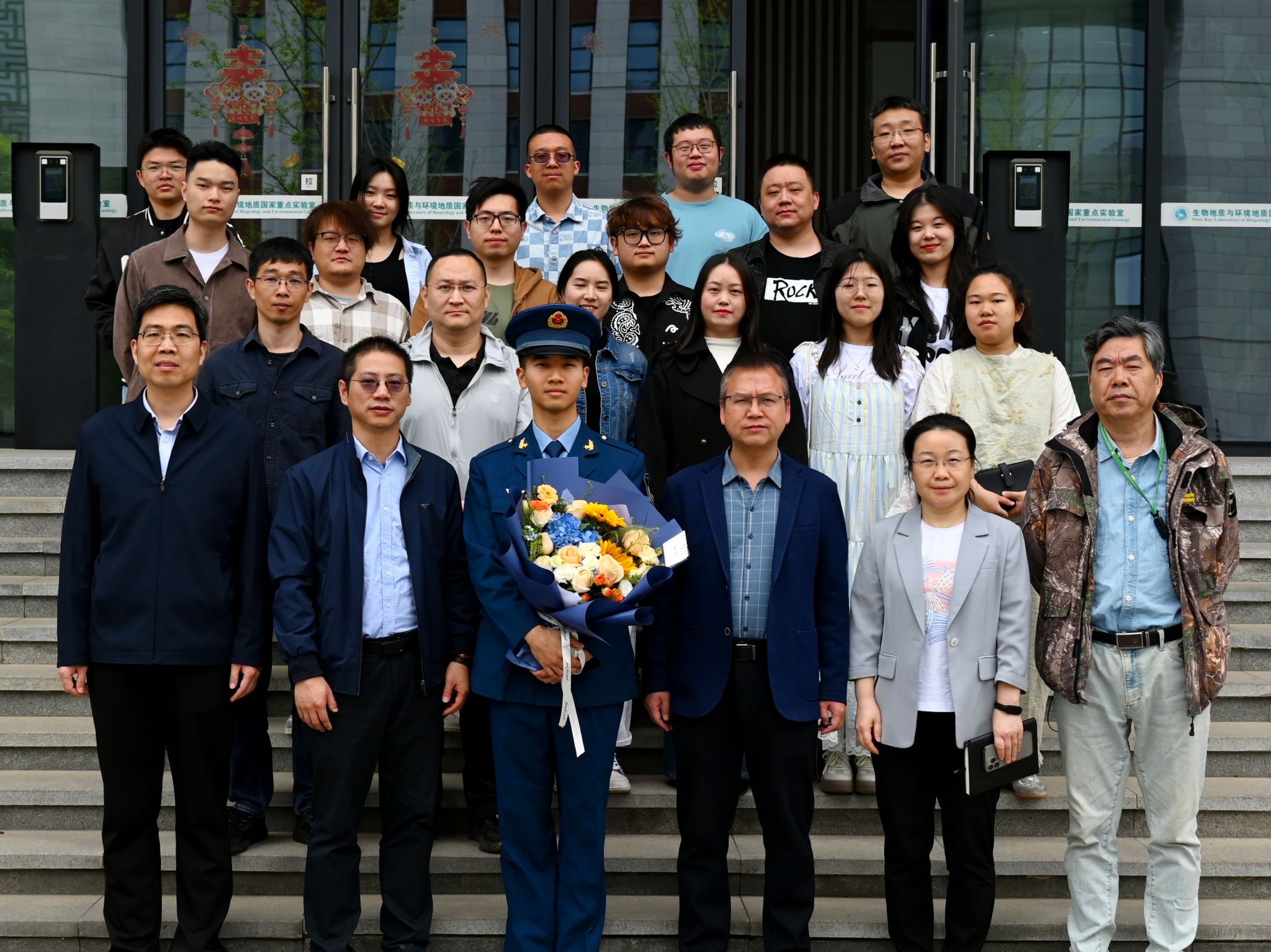 环境地球化学导学团队为我校卓越导学团队,团队师生秉持“上天、入地、下海、登极”理念,聚焦环境与新能源领域的前沿发展,立足当前环境污染问题深入开展研究,为环境问题的解决提供最终的清洁能源方案。刘宇杰为我院环境工程2022届毕业生,2022年进入地质微生物与环境全国重点实验室进行研究生阶段学习,于2023年至2025年服役于中部战区空军某航空兵部队某连,在军营中表现优异,曾获多项荣誉。刘宇杰在艰苦环境中锤炼出的坚韧意志和无畏精神与团队“天长地久”的育人文化理念深度契合,即尊重和顺应自然规律,又甘于奉献。团队师生将在刘宇杰成长经历的感召下,矢志不渝培养生态环保铁军,服务美丽中国建设。