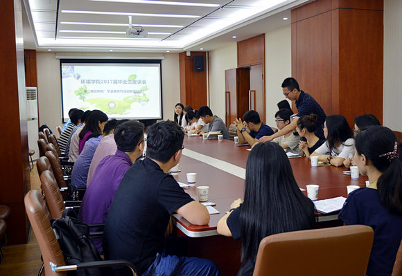 环境学院党委书记李素矿、副院长甘义群、副院长郭会荣、党委副书记朱继、水资源与水文地质系主任万军伟、环境科学与工程系主任罗朝晖、环境地质系主任周建伟、生物科学与技术系侯新东、学工组辅导员与2017届毕业生代表参与了座谈会。