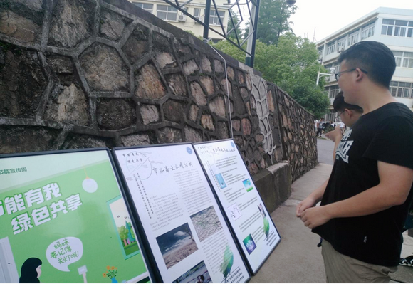气象科普协会会长张思驻足在展板前认真阅读,她说:“我和同学们在北区路过展板时发现展板内容新颖有趣、通俗易懂,让低碳校园的氛围更加浓郁了。”