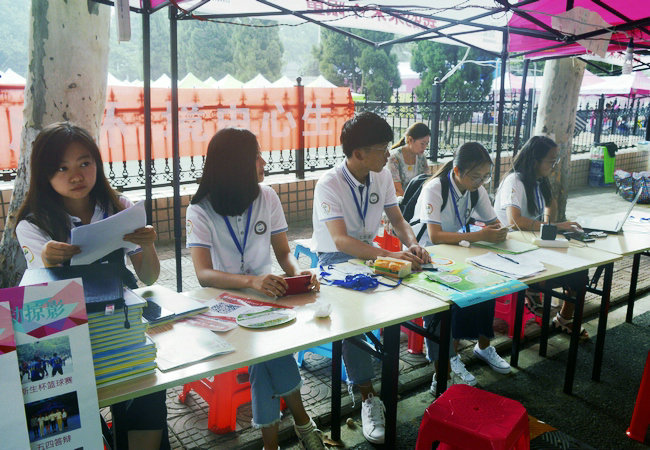 迎新第一天下起了大雨,但丝毫没有影响同学们的服务热情。团委学生会与志愿者分工合作,分别在体育馆前和迎新棚等待新生到来。体育馆前的志愿者负责举牌将新生带到迎新棚处,由迎新点的志愿者引导新生报名注册、关注学院公众号以及发放学院准备的院刊、野外实习风采展等新生礼品,然后由机动小组带领新生前往寝室安排休息。同时迎新棚内还设有家长休息点,方便家长询问、休息。
