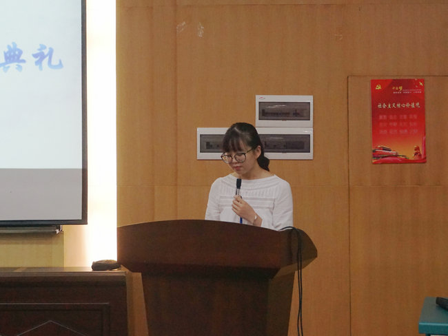 我院2015级本科生郭文杰作为学生代表发言。她和同学们分享了自己大学四年的奋斗历程,并结合自己的亲身经历,告诉同学们大学生活应该积极进取, 朝气蓬勃,敢于挑战自己。