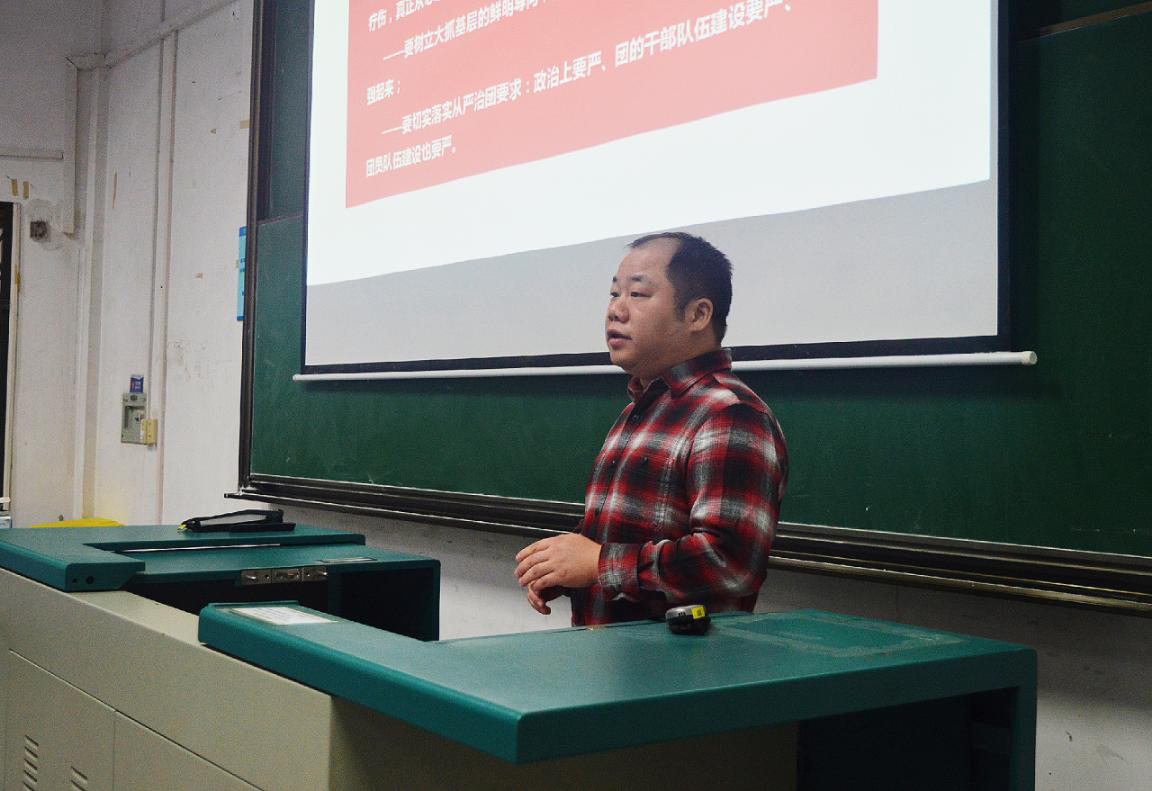 10月21日上午,环境学院“青年大学习·团干讲团课”活动暨2018年学生干部培训大会在教三208拉开帷幕。学院党委副书记姜明敏老师、团委书记王碧老师、兼职辅导员汪静老师和全体学生干部参加大会。大会从全体奏唱团歌开始,嘹亮的歌声不仅展现了青年的活力与朝气,更展现出了环院学生积极向上的精神面貌。