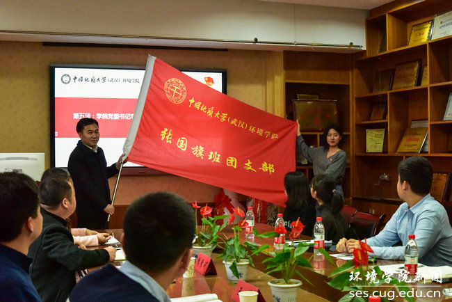 为全面推进学院“三全育人”综合改革试点工作,进一步将“张国旗班”行动计划引向深入,落实学校关于学生组织改革的要求,创新和强化基层团组织建设,更好地做好学生思想引领和服务学生成长工作,经学院学生会申请、学院团委批复,成立共青团中国地质大学(武汉)环境学院“张国旗班”支部委员会(简称“张国旗班”团支部),首届支部委员会由陈雪杨同学任支部书记,张正煊同学任支部副书记,高婷同学任组织委员,赵心瑜同学任宣传委员。