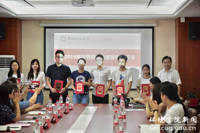 李素矿为环境学院2019届优秀毕业生颁发荣誉证书。