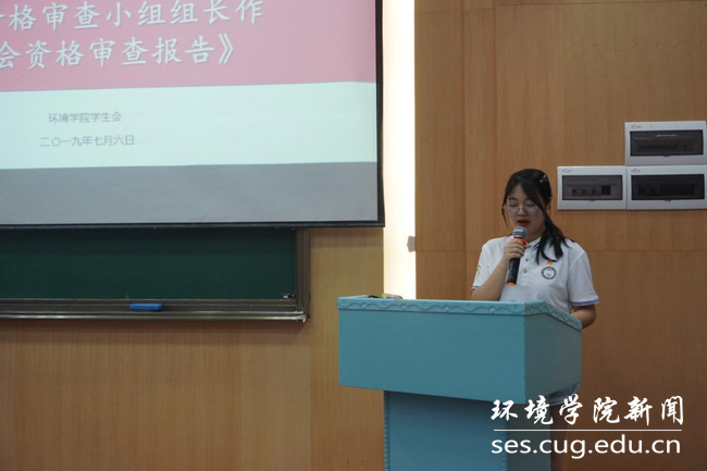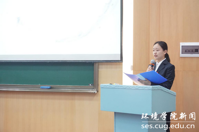 校学生会副主席陈柳源宣读《关于同意召开中国地质大学(武汉)环境学院第五次学生代表大会的批复》。