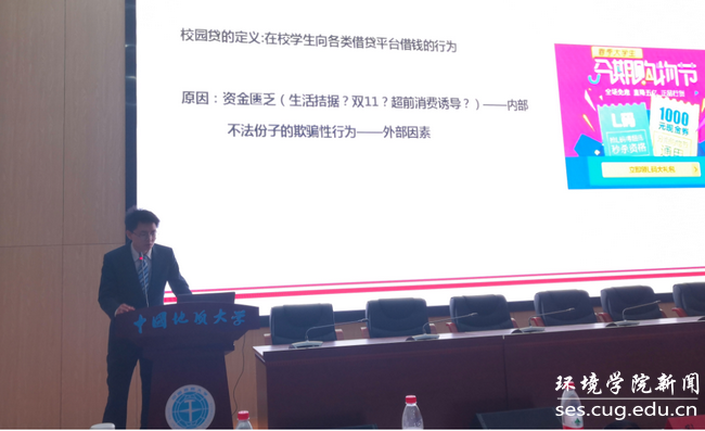 李洋首先介绍了未来城校区的地理位置及治安状况,同时结合我校保卫处日常工作与同学们分享了发生在各高校的盗窃、诈骗、失火等案件,用一个个真实生动的案例敲响了同学们心中的警钟。