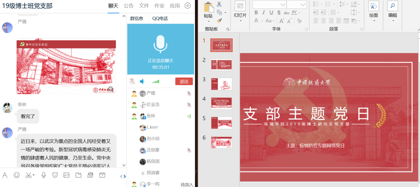 水文专业大学生党支部 通过学习强国平台进行视屏会议 |