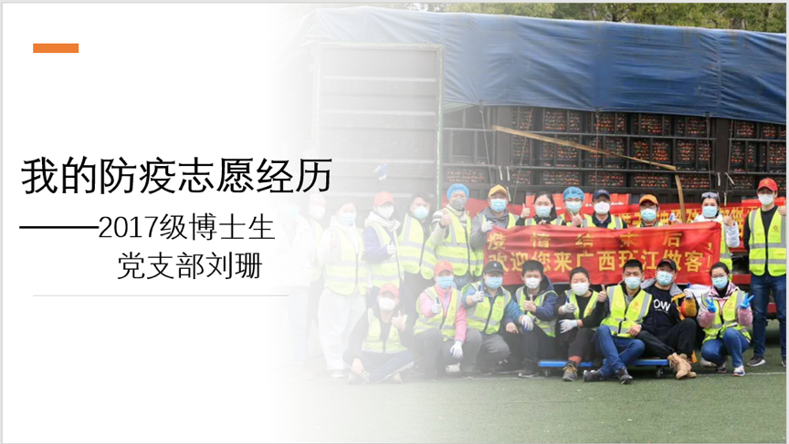 (通讯员刘珊、宋霖 编辑耿婧)在战疫初期,她的身影忙碌在一线方舱医院的搭建点;在战疫中期,她在电话的这一端耐心、细心地回答和记录市民的就医咨询以及滞留武汉人员遇到的困难;在战疫后期,她在不舍又激动欣喜的情绪中,送走了全国各地的医护人员。哪里需要她,她就扎根到哪里。2019级博士研究生党支部刘珊在大考中,用实际行动书写了青年党员的答卷。
