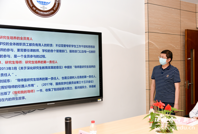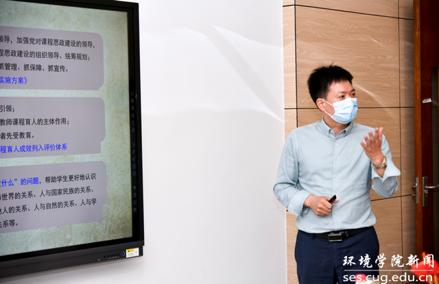 学院党委书记李素矿以《创新三全育人,实现立德树人,推进水土气生环境学科群一体化育人》为题,从“1场战‘疫’——检验‘三全育人’实效标尺”“3项举措——探索‘美丽中国’课程思政、实施‘张国旗班’行动计划、打造‘1+6’资政育人载体”“4点体会——坚持党建引领‘三全育人’、谋划‘三全育人’工作方案、筑牢立德树人‘铁打营盘’、创新‘三全育人’成果宣传”“4点思考——深化‘三全育人’路径措施”四个方面汇报了我院“三全育人”综合改革试点工作进展情况和阶段性创新成果。他表示,学院党委下一步将克服疫情影响,统筹教育教学发展和试点改革工作,持续深化知识传授、能力培养与价值引领有机融合,高质量打造特色一体化育人体系和新时代高校思想政治教育新样板。