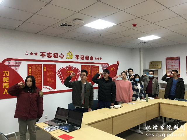 (通讯员许向南、柳璨、宋霖 摄影许向南、柳璨 编辑耿婧)2020年11月27日下午,环境学院学生党支部联合主题党日分别在环境学院党员之家和腾讯会议,线下和线上同步召开。辅导员宋霖老师及各支部学生党员通过腾讯会议线上参加主题党日,各本科生党支部书记、研究生党支部书记,在党员之家参加主题党日。本次主题党日由2018级学硕一班硕士研究生党支部和2018级学二硕班硕士研究生党支部共同领学。