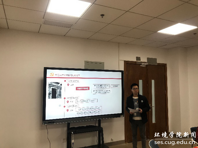 环境学院2018级学硕一班硕士研究生党支部书记柳璨同志主持本次主题党日活动。