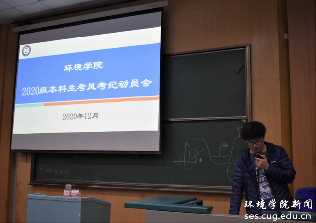 (通讯员王懿洁 摄影王冰瑶 编辑耿婧)感恩励志·共促学风。为培养学生常怀感恩之心、常为感恩之行,促进学生全面成长成才。2020年12月18日下午,环境学院在南望山校区开展2020奖学金分享交流暨考风考纪教育大会。环境学院党委副书记王海锋,辅导员王碧、孟庆达、耿婧、丁永辉,2019级本科生代表、2020级全体本科生参加本次活动。