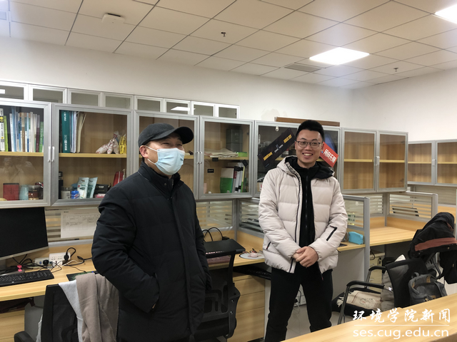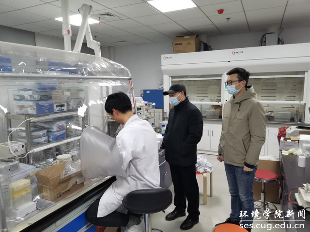 随后,李素矿一行来到环境学院大楼实验室,看望在实验室里工作的研究生。李素矿详细地了解同学们的科研情况、生活情况,询问学习生活上是否存在困难。他叮嘱同学们开展实验时切记做好个人防护、注意劳逸结合、保证健康安全。学习工作之余,记得关心问候家人,为家人送上新年祝福。