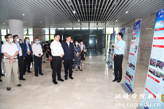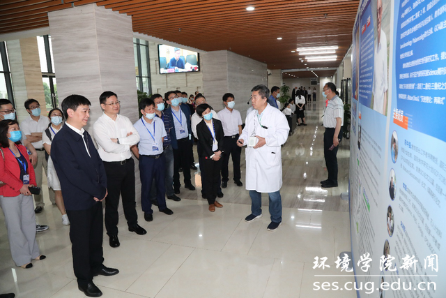 随后全国气象部门领导和专家代表团在科教六楼参观局校合作地大大气科学发展成果展和湖北省大气复合污染研究中心。大气科学系张仲石教授从学科建设、科研方向及人才培养等方面汇报了大气科学发展成果。大气科学系孔少飞教授介绍了湖北省大气复合污染研究中心的建设背景、建设目标、定位、研究方向及大气颗粒物组分实验室、多参数实验室、光化学实验室、气溶胶观测实验室、气象及辐射测量实验室。