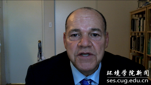 加拿大滑铁卢大学理学院副院长Jonathan Witt教授特视频致欢迎辞,他对滑铁卢大学及理学院作了简要介绍,并表示学校领导和老师非常期待不久之后与2021级地大新生在滑铁卢大学相见。