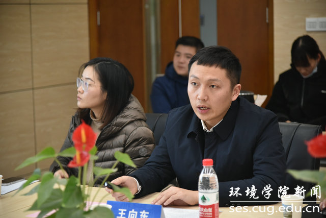 辅导员孟庆达做环境学院学生发展报告,汇报学院近五年学生发展情况。他从近五年学院学生总体现状、学习情况、党员发展情况以及升学就业情况分析学院学生发展情况。他建议打造全员育人共同体、汇聚“多维育人”动力源。加强各教育主体的协调联动,从导师、班主任和辅导员为着力点构建良性运转的全员育人协同机制。