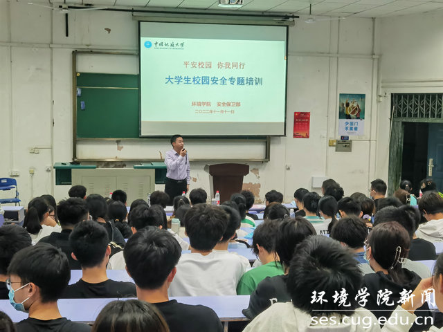 (通讯员刘闫旭、冯雪岚 摄影冯雪岚、刘闫旭 编辑耿婧)11月11日晚19:00,环境学院2022级本科生培养方案介绍暨安全教育大会在南望山校区教三楼207举行,安全保卫部副部长彭冠军,治安科魏景明老师,学院副院长柴波教授,辅导员李平及2022级全体本科生参加会议。