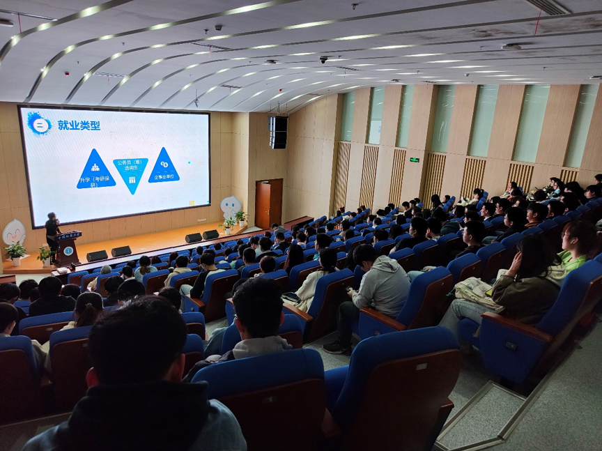 随后,2024届毕业生辅导员宋霖以“乘风破浪”为主题,向同学们介绍了我院过去五年的总体就业情况,并结合当下研究生报考形势及考试内容、学校推免方案、考公及就业的现状、简历制作技巧进行了全面而详细的分析与总结,对各种形式的就业过程中可能遇到的问题进行了解答,她勉励同学们,行稳才能致远,要脚踏实地,做好具体的规划和计划,并每天认真落实好计划;找准自身定位,正视自己的不足,遇到困难时积极寻找解决途径,并乐观面对;将自身发展与国家发展结合起来,努力实现人生的价值和意义,奋斗在建设社会主义现代化国家的路上。机会会留给有准备的人,确定合理的目标,做好充足的准备,坚定信念并持之以恒,最终一定可以实现理想。