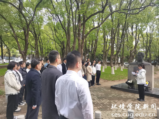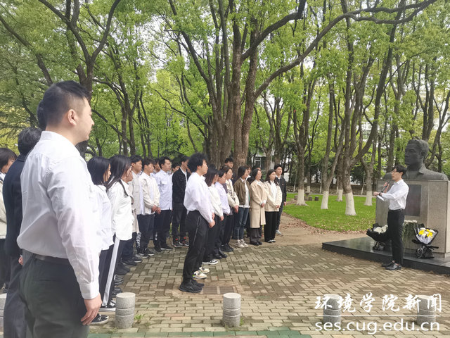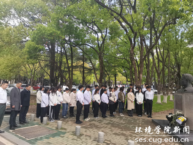 (通讯员季玉轩、孟庆达 摄影陶慧玲 编辑耿婧)清明至,万物苏,愿花飨逝人,春暖斯人。为纪念我校优秀校友张国旗,学习弘扬张国旗精神,4月5日上午9:00,环境学院师生来到张国旗雕像前开展张国旗雕像祭扫仪式。环境学院党委书记李素矿,党委副书记王海锋,院团委副书记孟庆达、陈俊男、赵恩民,“张国旗班”党支部、团支部和水文专业大学生党支部代表参与活动。“张国旗班”团支部副书记王倩主持仪式。