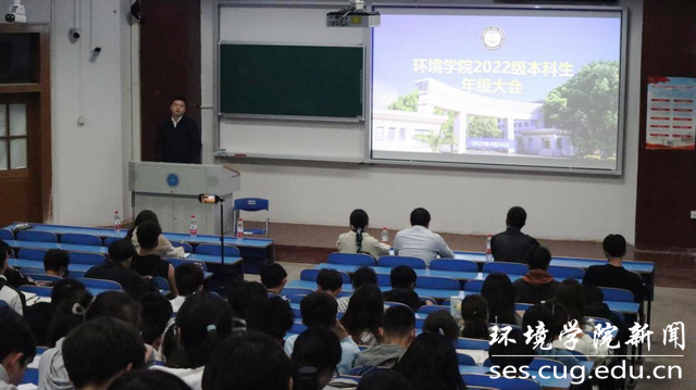 (通讯员段翔、徐溪清 摄影徐溪清 编辑耿婧)为切实加强2022级本科生教育管理工作,弘扬践行“严在地大”校风学风,提高学生安全意识,做好“五一”假期安全教育提醒。4月26日,我院在南望山校区教一楼101召开2022级本科生年级大会。学校安全保卫部彭红进老师,魏景明老师,学校反诈宣讲员、地理与信息工程学院2022级本科生何敏君,学院2022级本科生辅导员王碧以及全体2022级本科生参加大会。