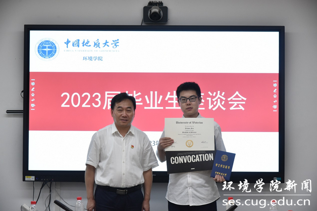 李素矿为2023届地下水科学与工程(中外合作办学)毕业生代表颁发滑铁卢大学、中国地质大学(武汉)本科学位证。