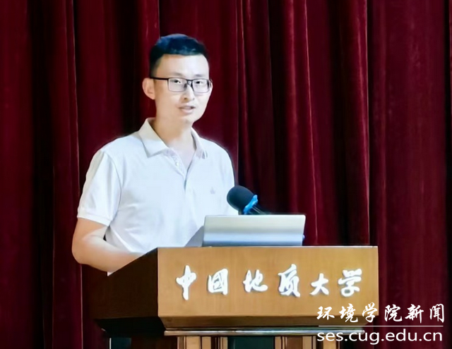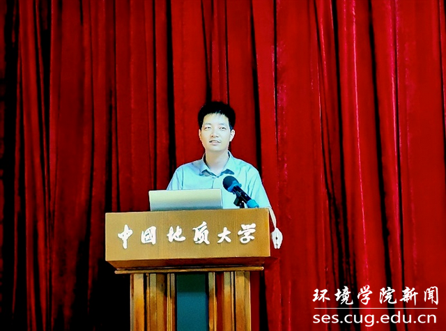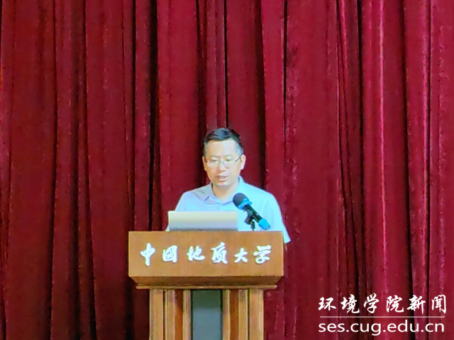 班主任代表刘邓教授发言。他向全体新生来到地大环境学院求学表示欢迎。他结合自身大学求学经历,寄语新生要建设强大的内心,提高自我驱动力,善于发掘自身的闪光点,珍惜大学期间的友情、师生情,传承地大环境人的“英雄气”。他代表全体新生班主任表示将守好班主任的职责,为同学们的大学生活保驾护航。