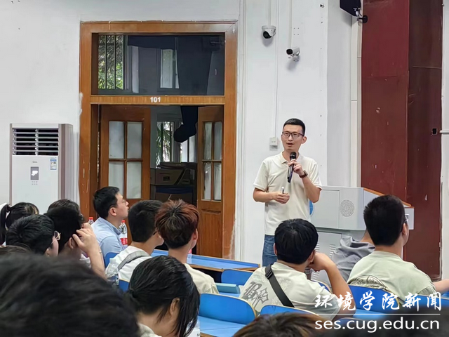 环境学院研三学长韩鹏结合自身的志愿服务向新生做分享。